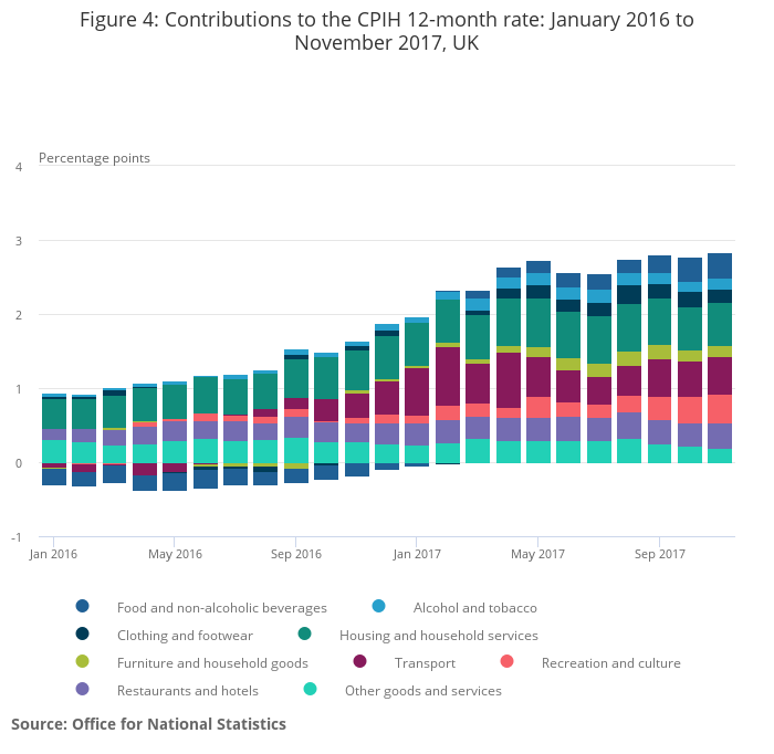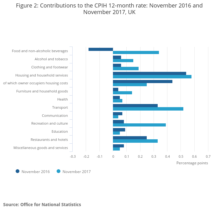 - The Consumer Prices Index including owner occupiers’ housing costs (CPIH) 12-month inflation rate was 2.8% in November 2017, unchanged from October 2017.