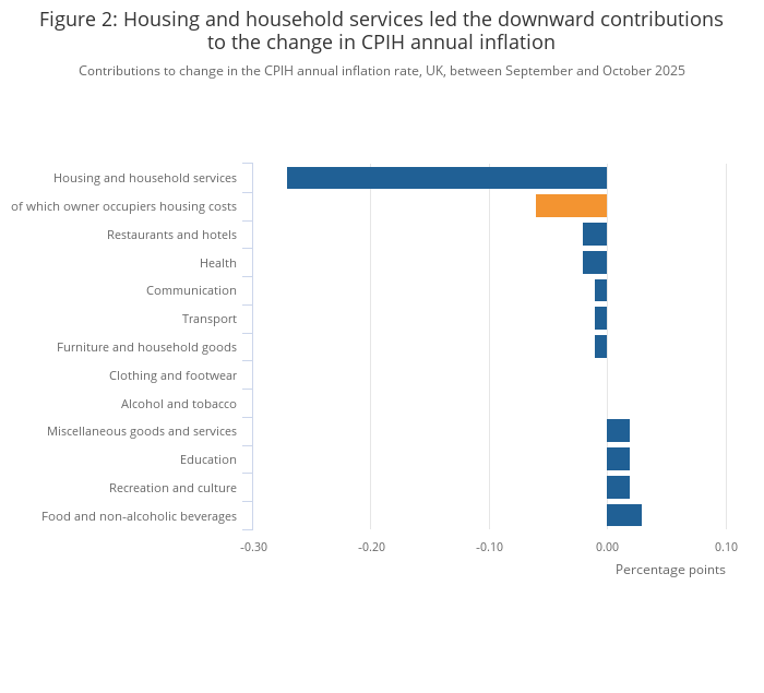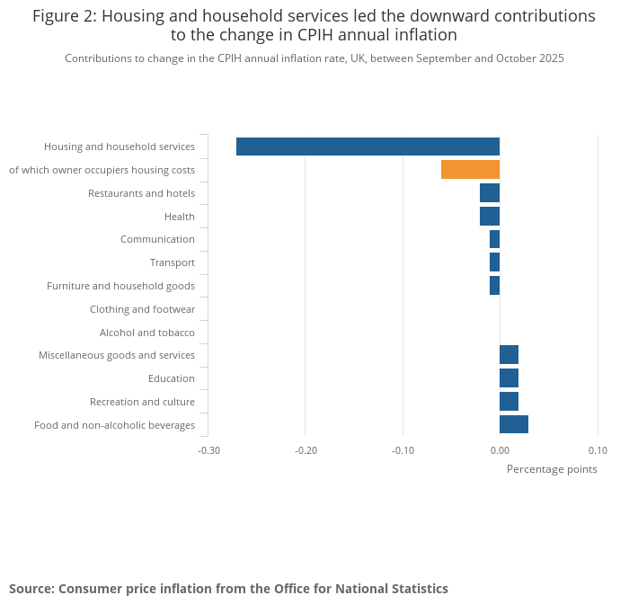 Contributions to change in the CPIH annual inflation rate, UK, between September and October 2025