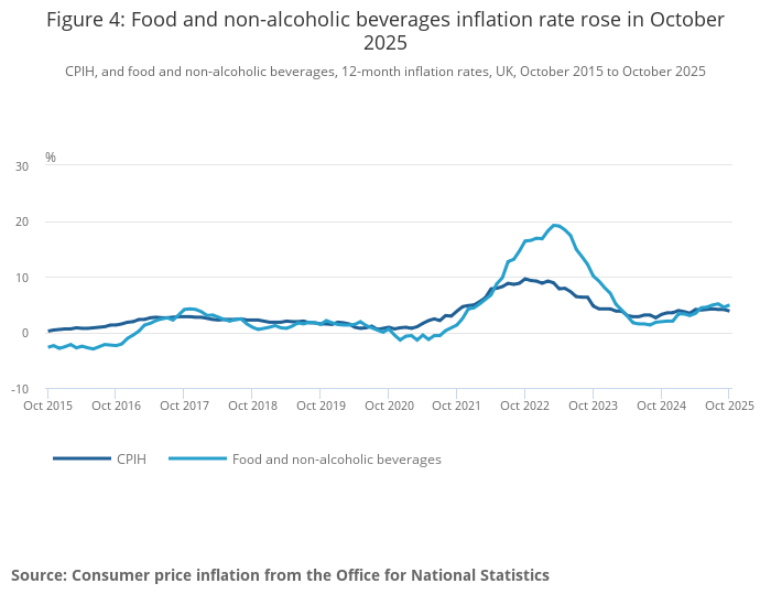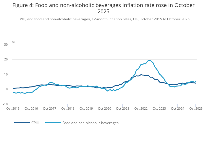 Download this chart Figure 4: Food and non-alcoholic beverages inflation rate rose in October 2025