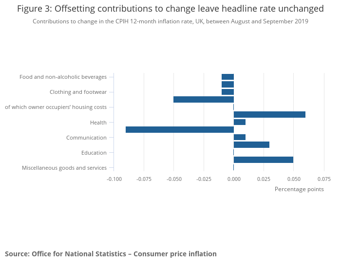 The Consumer Prices Index including owner occupiers’ housing costs (CPIH) 12-month inflation rate was 1.7% in September 2019, unchanged from August 2019.