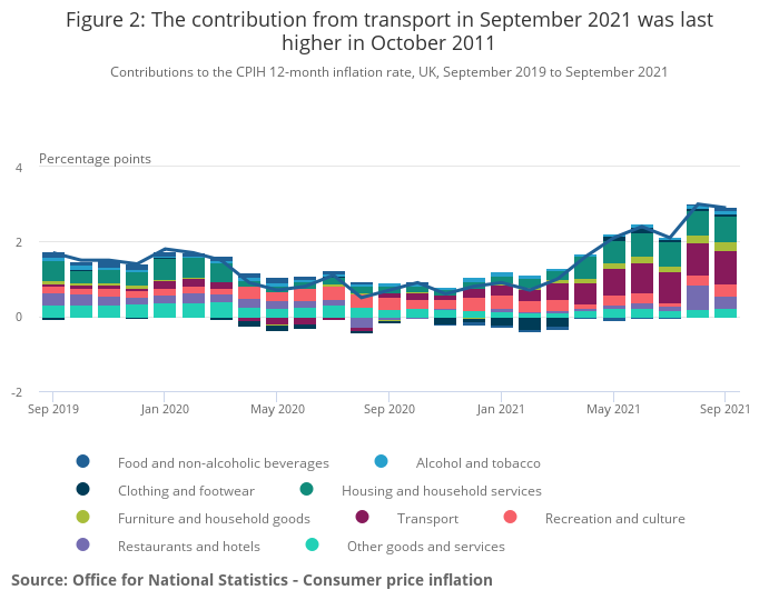 Figure 2: The contribution from transport in September 2021 was last higher in October 2011