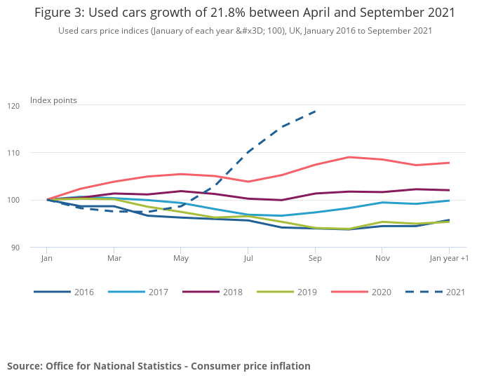Figure 3: Used cars growth of 21.8% between April and September 2021