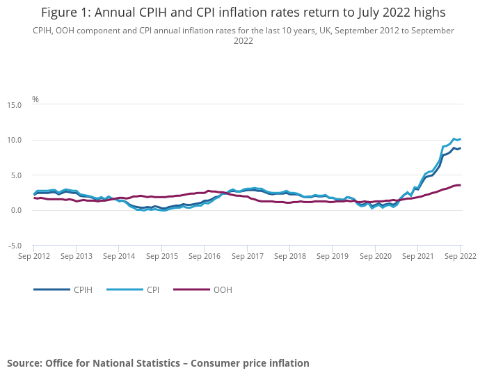 Office for National Statistics (ONS), released 19 October 2022, ONS website, statistical bulletin, Consumer price inflation, UK: September 2022.
