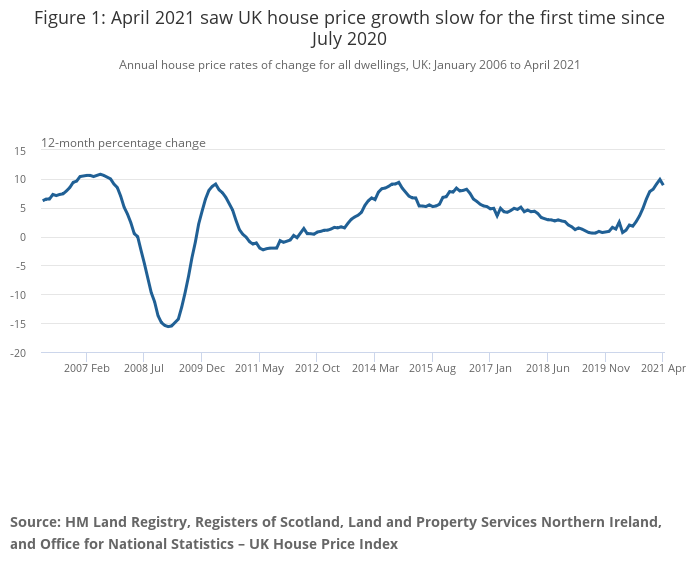 Figure 1: April 2021 saw UK house price growth slow for the first time since July 2020