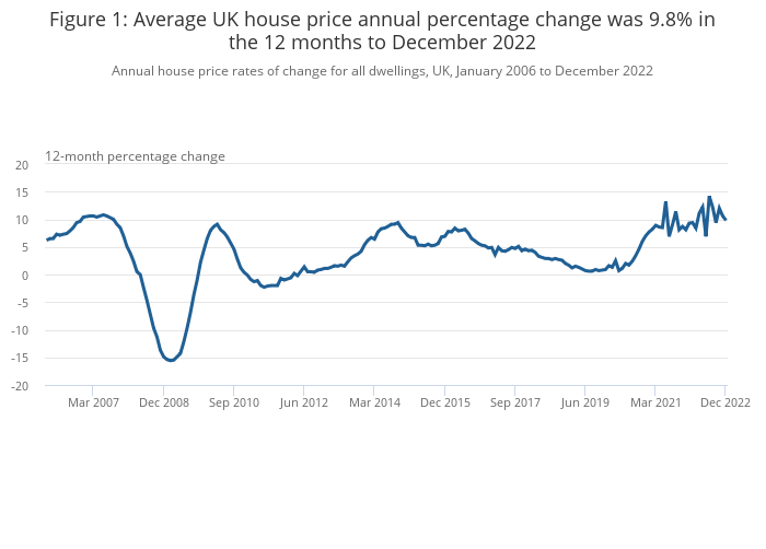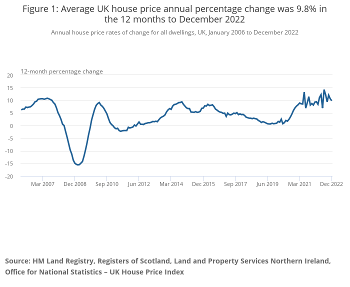 Figure 1: Average UK house price annual percentage change was 9.8% in the 12 months to December 2022