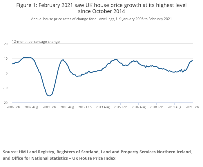 Figure 1: February 2021 saw UK house price growth at its highest level since October 2014