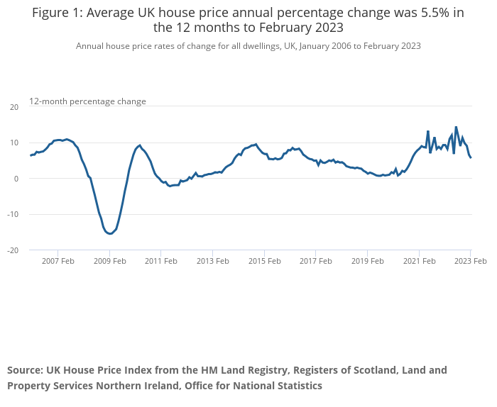 Figure 1: Average UK house price annual percentage change was 5.5% in the 12 months to February 2023