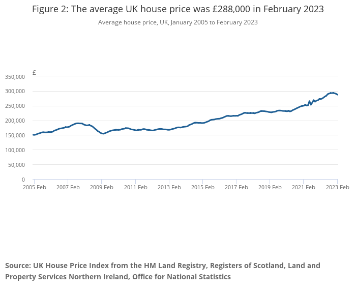 Figure 2: The average UK house price was £288,000 in February 2023