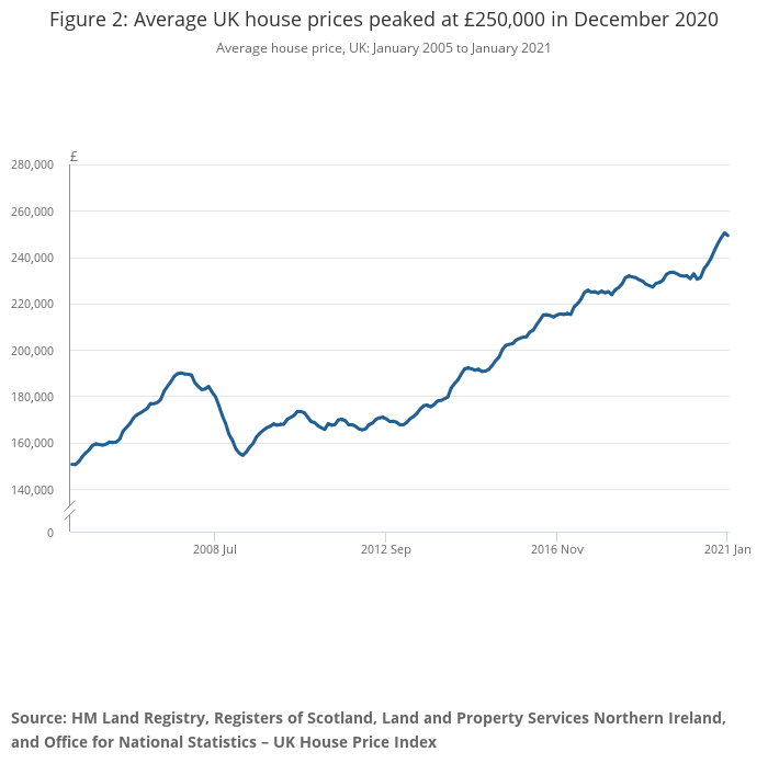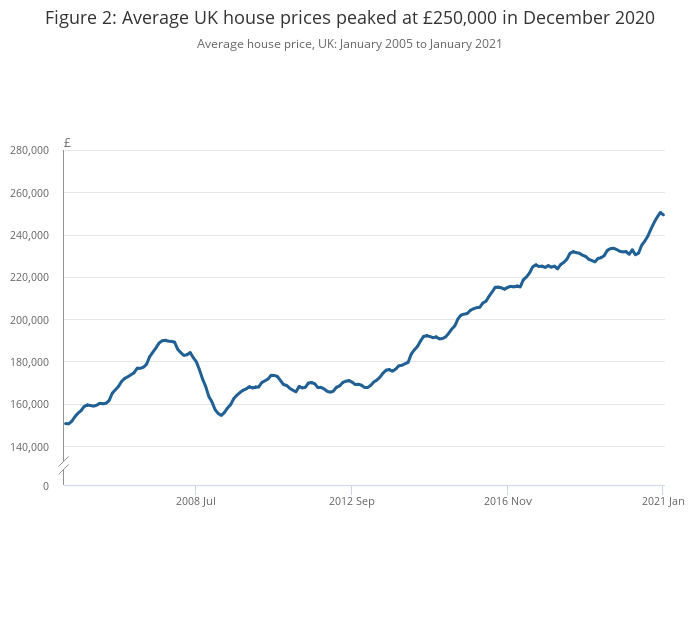 Figure 2: Average UK house prices peaked at £250,000 in December 2020
