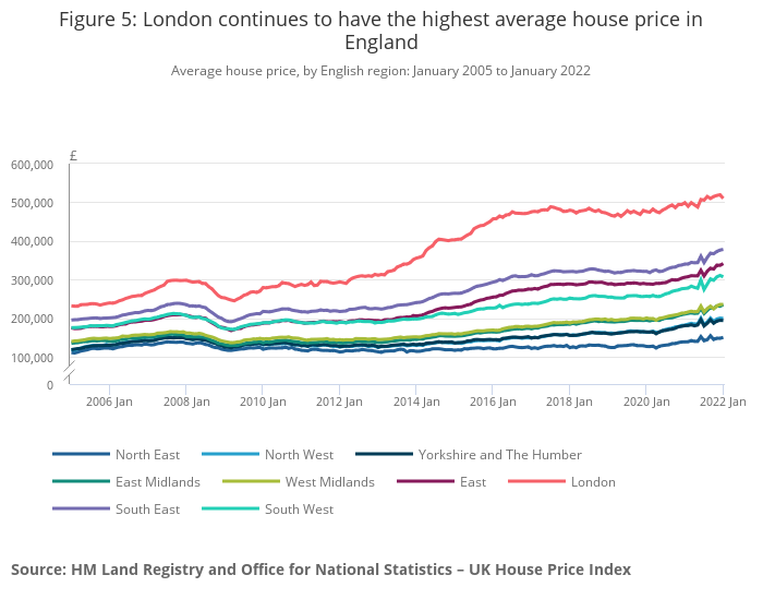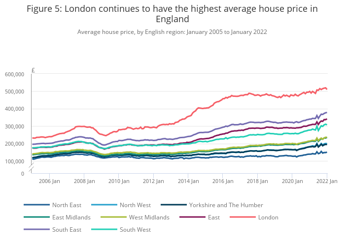Download this chart Figure 5: London continues to have the highest average house price in England