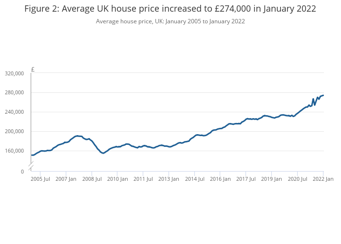 Figure 2: Average UK house price increased to £274,000 in January 2022