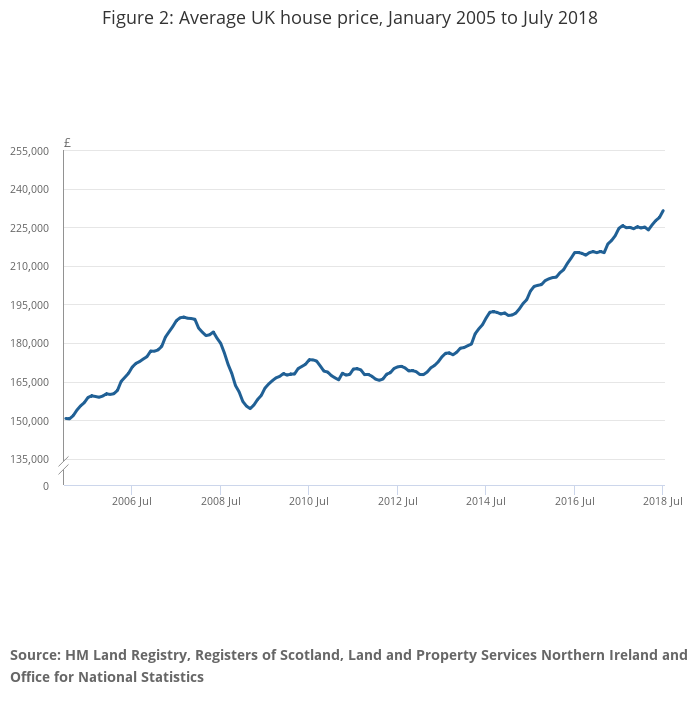 This is a high-level summary of the UK House Price Index (HPI). For full details, including commentary, historical data tables and analytical tools, please see the main publication of the House Price Index, published today (9:30, 19 September 2018) by HM Land Registry on the GOV.UK website.