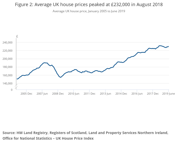This is a high-level summary of the UK House Price Index (HPI). For full details, including commentary, historical data tables and analytical tools, please see the main publication of the House Price Index, published today (9:30am, 14 August 2019) by HM Land Registry on the GOV.UK website.