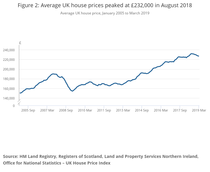 This is a high-level summary of the UK House Price Index (HPI). For full details, including commentary, historical data tables and analytical tools, please see the main publication of the House Price Index, published today (9:30am, 22 May 2019) by HM Land Registry on the GOV.UK website.