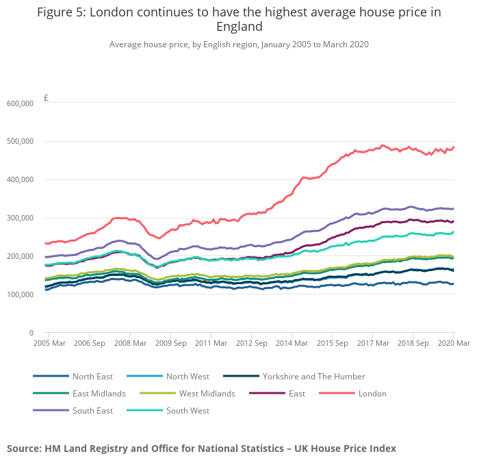 Download this chart Figure 5: London continues to have the highest average house price in England
