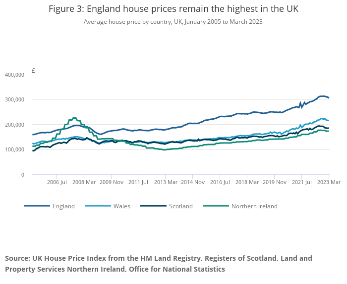 Office for National Statistics (ONS), released 24 May 2023, ONS website, statistical bulletin, UK House Price Index: March 2023