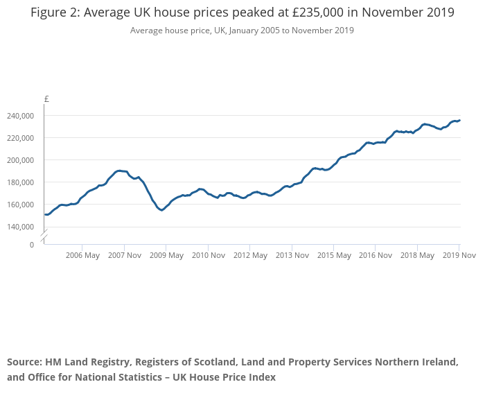 Figure 2: Average UK house prices peaked at £235,000 in November 2019