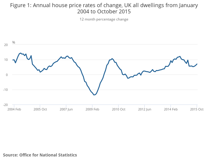 UK house prices increased by 7.0% in the year to October 2015, up from 6.1% in the year to September 2015.