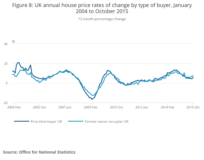 Figure 8: UK annual house price rates of change by type of buyer, January 2004 to October 2015