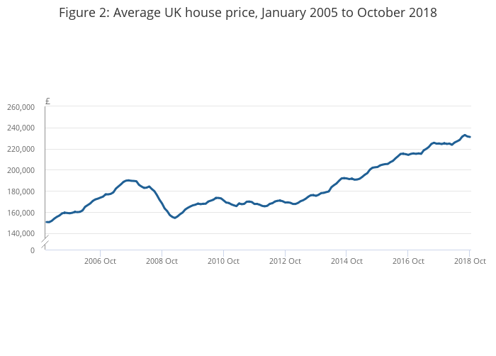 Figure 2: Average UK house price, January 2005 to October 2018