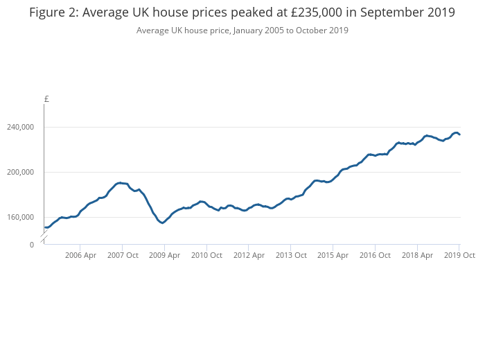 Download this chart Figure 2: Average UK house prices peaked at £235,000 in September 2019