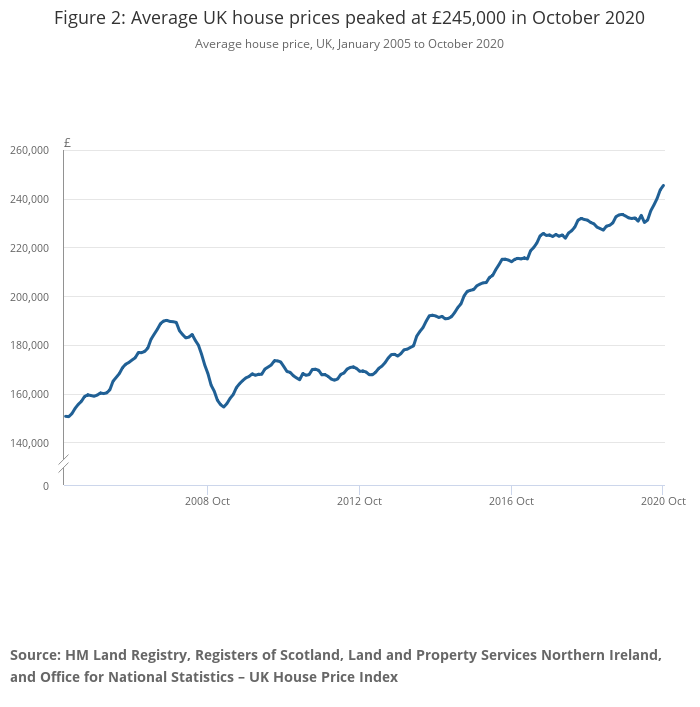 Figure 2: Average UK house prices peaked at £245,000 in October 2020