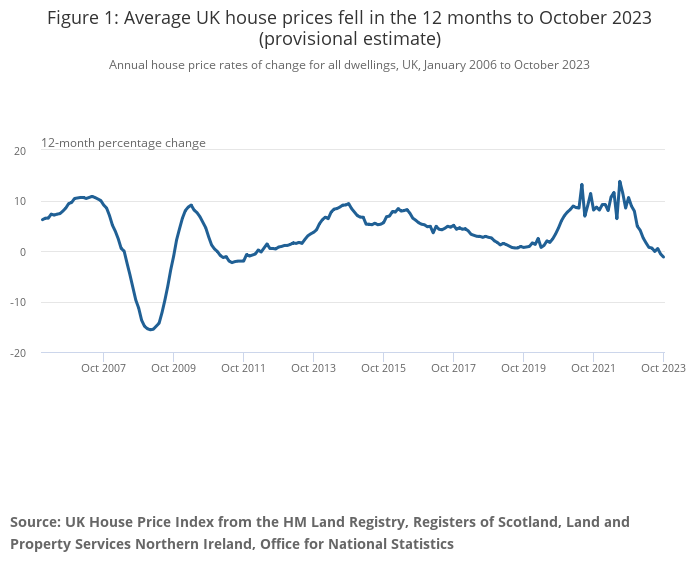 Figure 1: Average UK house prices fell in the 12 months to October 2023 (provisional estimate)