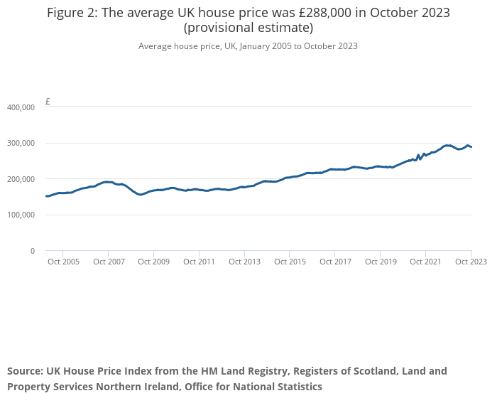 The average UK house price was £288,000 in October 2023, which was £3,000 lower than 12 months ago.