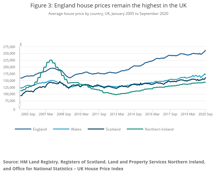 UK average house prices increased by 4.7% over the year to September 2020