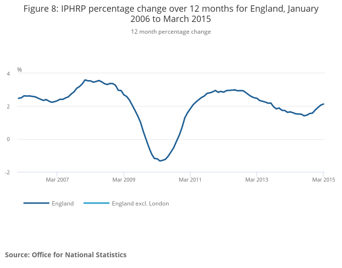 Download this chart Figure 8: IPHRP percentage change over 12 months for England, January 2006 to March 2015