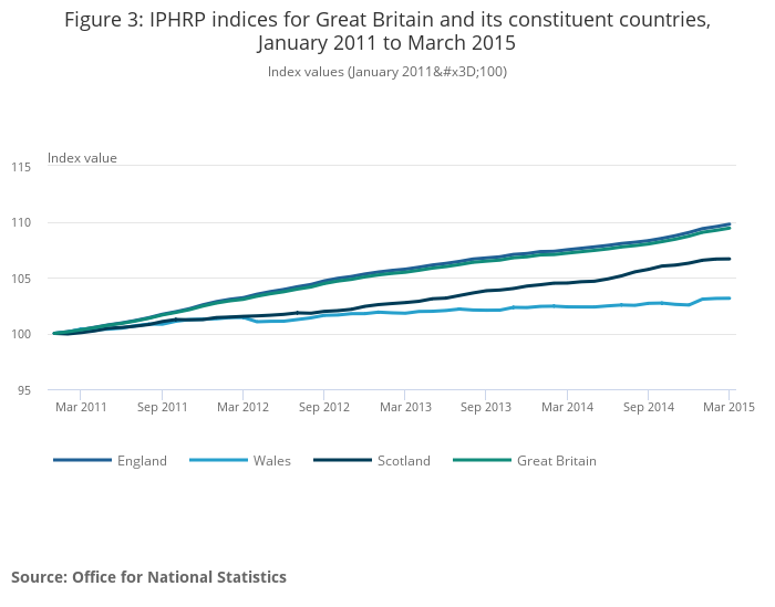 Figure 3: IPHRP indices for Great Britain and its constituent countries, January 2011 to March 2015