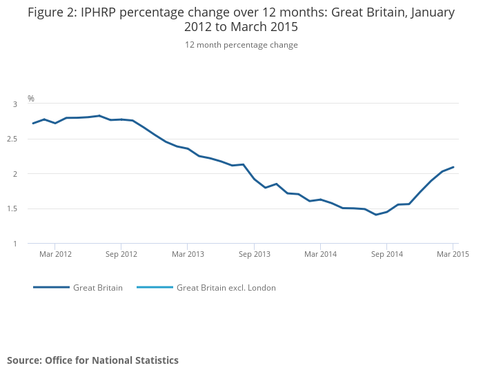 Figure 2: IPHRP percentage change over 12 months: Great Britain, January 2012 to March 2015