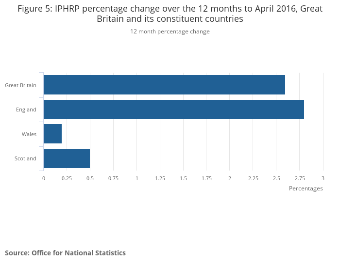 Figure 5: IPHRP percentage change over the 12 months to April 2016, Great Britain and its constituent countries