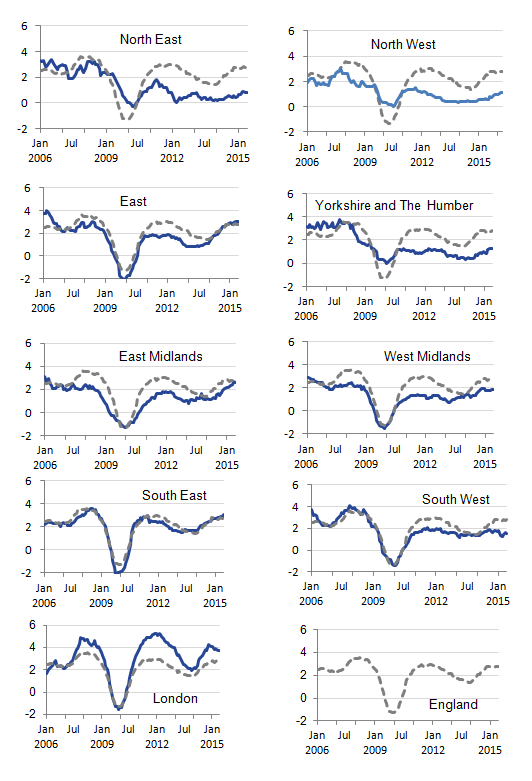 Download this image Figure 7: IPHRP percentage change over 12 months by English region, January 2006 to April 2016