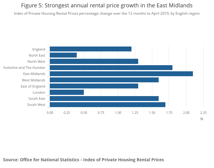 Figure 5: Strongest annual rental price growth in the East Midlands