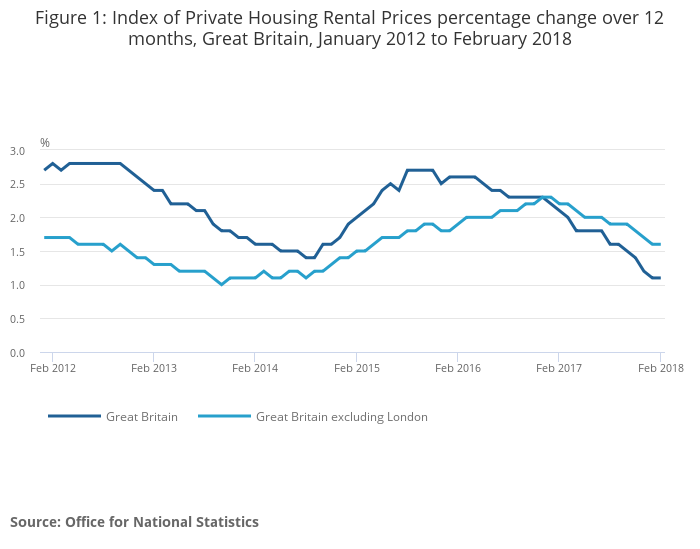 Figure 1: Index of Private Housing Rental Prices percentage change over 12 months, Great Britain, January 2012 to February 2018