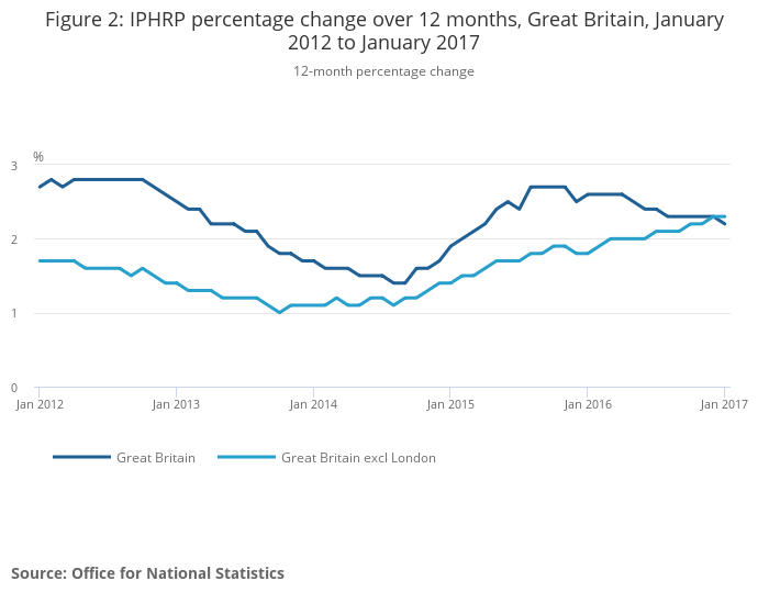 Figure 2: IPHRP percentage change over 12 months, Great Britain, January 2012 to January 2017