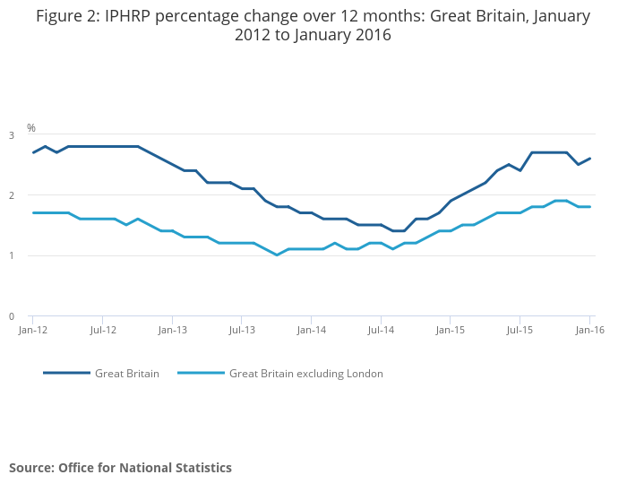 Figure 2: IPHRP percentage change over 12 months: Great Britain, January 2012 to January 2016