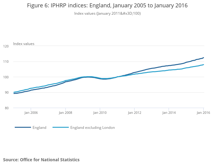 Download this chart Figure 6: IPHRP indices: England, January 2005 to January 2016