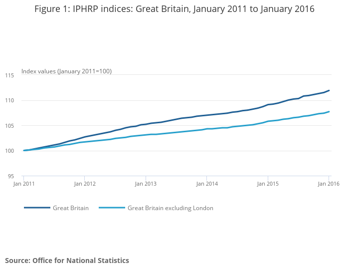 Download this chart Figure 1: IPHRP indices: Great Britain, January 2011 to January 2016