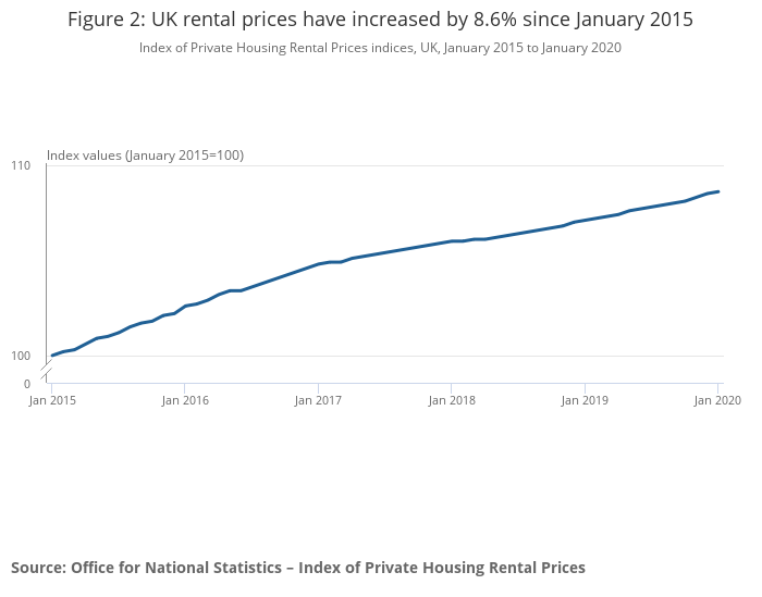 Figure 2: UK rental prices have increased by 8.6% since January 2015