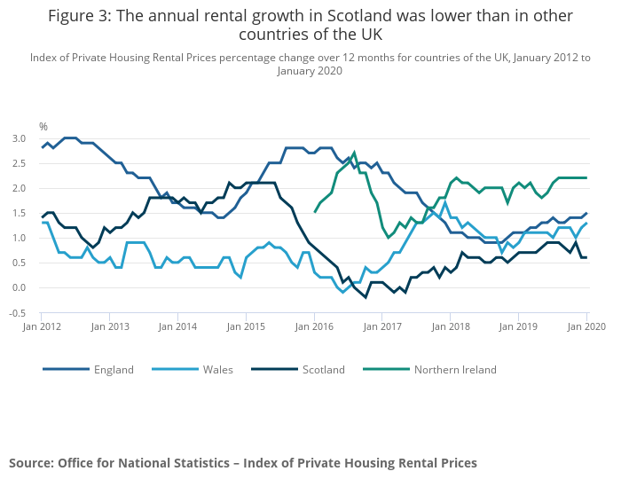 Figure 3: The annual rental growth in Scotland was lower than in other countries of the UK