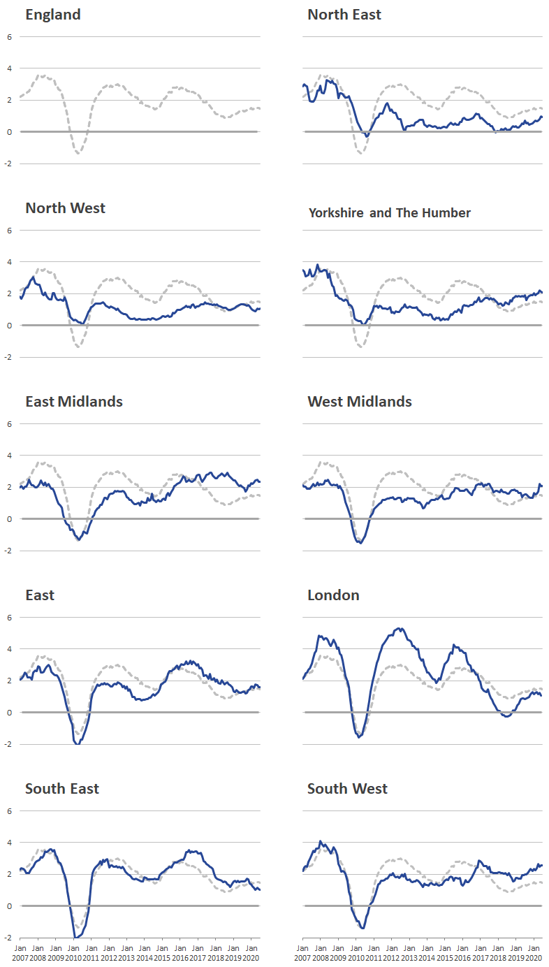 Image .csv .xlsFigure 6 shows the historical 12-month percentage growth rate in the rental prices of each of the English regions.