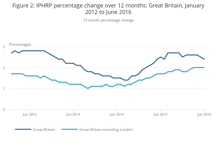 Figure 2: IPHRP percentage change over 12 months: Great Britain, January 2012 to June 2016