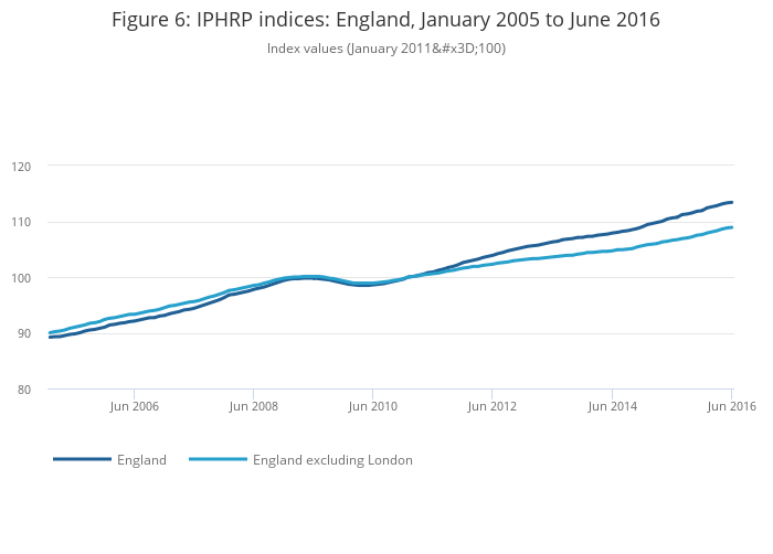 Figure 6: IPHRP indices: England, January 2005 to June 2016