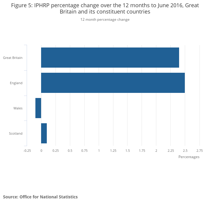 Figure 5: IPHRP percentage change over the 12 months to June 2016, Great Britain and its constituent countries
