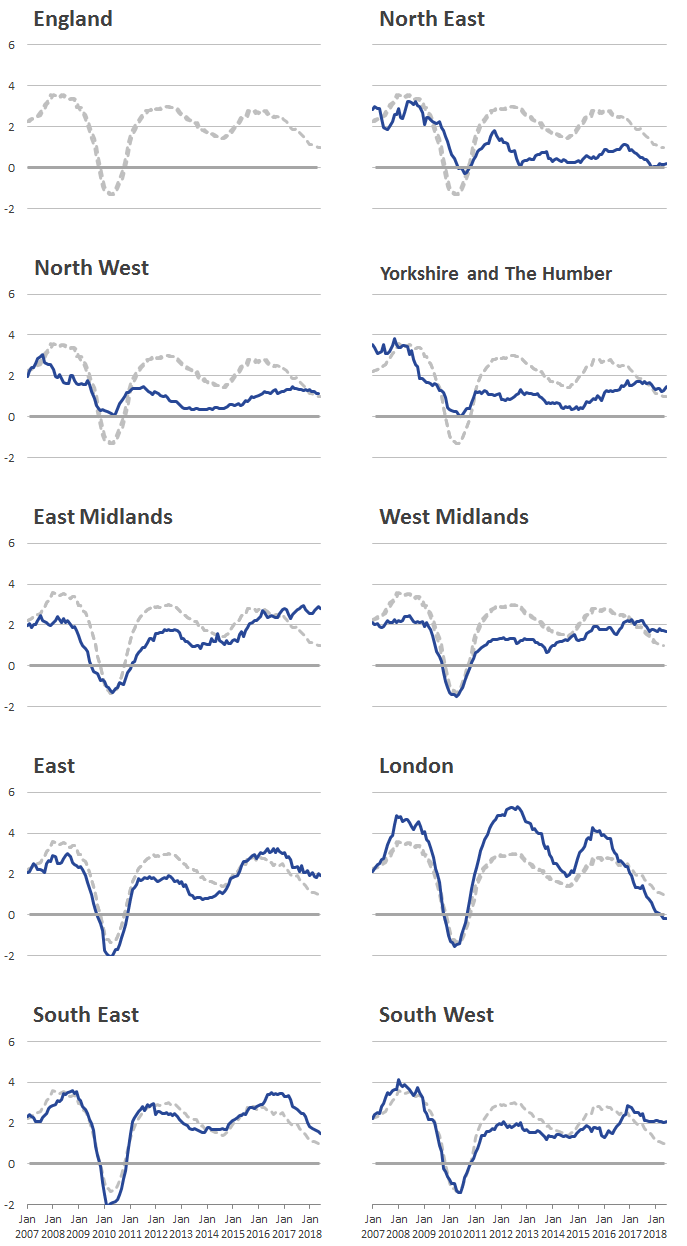 Image .csv .xlsFigure 6 shows the historical 12-month percentage growth rate in the rental prices of each of the English regions.