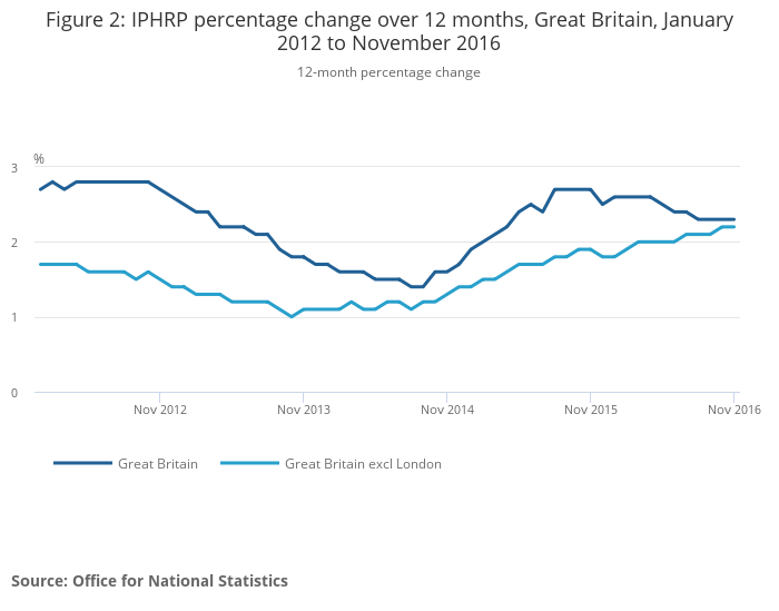 Figure 2: IPHRP percentage change over 12 months, Great Britain, January 2012 to November 2016
