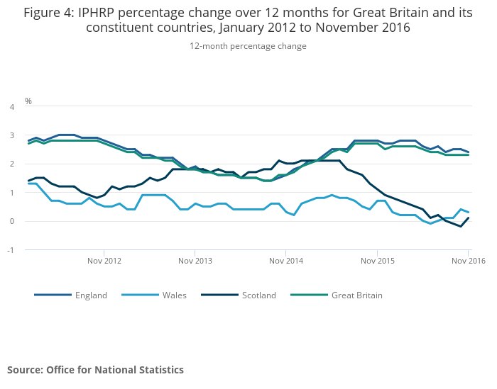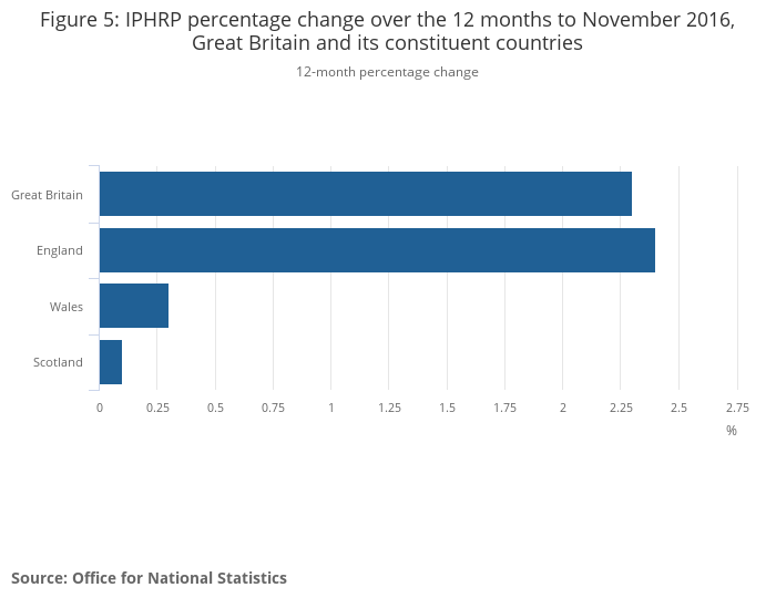 Figure 5: IPHRP percentage change over the 12 months to November 2016, Great Britain and its constituent countries