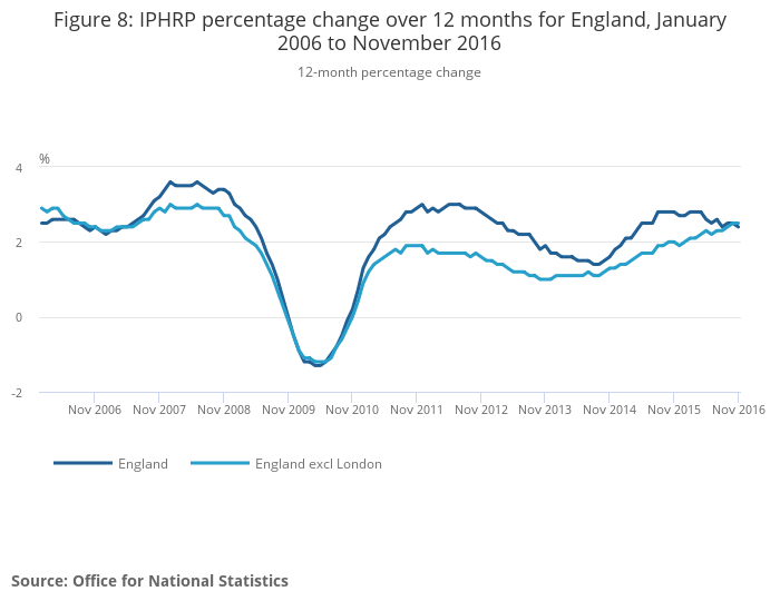 Download this chart Figure 8: IPHRP percentage change over 12 months for England, January 2006 to November 2016